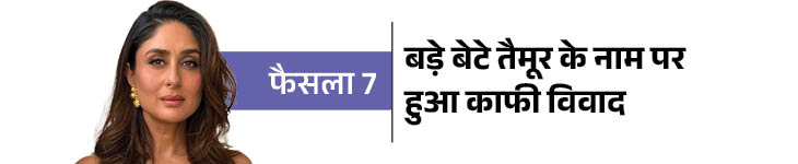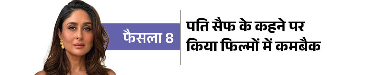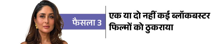करीना पिछले 25 साल से फिल्म इंडस्ट्री का अहम हिस्सा रही हैं। इस दौरान उन्होंने कई ऐसे फैसले लिए, जिन्होंने सभी को चौंका दिया। चाहे वो किसी ब्लॉकबस्टर फिल्म को ठुकराना हो या फिर अपने बच्चों के नामों को लेकर लिया गया बेबाक फैसला। एक्ट्रेस अपने हर निर्णय में बेहद स्पष्ट और साहसी रही हैं।