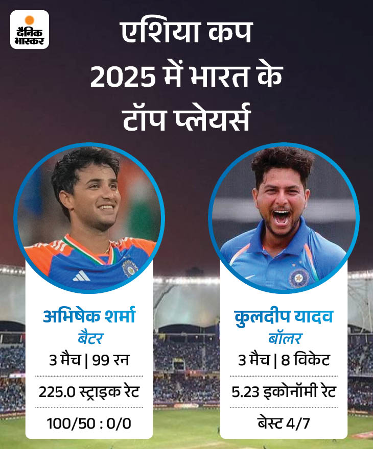 एक पारी में गिल से आगे निकले संजू भारत ने टूर्नामेंट में जीत की हैट्रिक बनाई है। इसके बावजूद टीम में कुछ ईश्यू उभरे हैं। तीन मैचों के बाद भी भारत का कोई बल्लेबाज टूर्नामेंट में 100 रन पूरे नहीं कर पाया है। ओपनर अभिषेक शर्मा ने सबसे ज्यादा 99 रन बनाए हैं। दूसरे ओपनर शुभमन गिल 3 मैचों में सिर्फ 35 रन बना पाए हैं। गिल को संजू सैमसन की जगह ओपनिंग दी गई है। सैमसन ने 1 पारी में ही बल्लेबाजी की और 56 रन बनाकर गिल से आगे निकल गए।