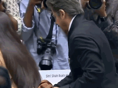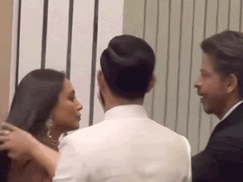 वीडियो में शाहरुख खान को रानी मुखर्जी की साड़ी का पल्लू पकड़े हुए देखा जा सकता है, ताकि वह आसानी से और सहजता से अपनी सीट पर बैठ सकें। यही नहीं एक अन्य वीडियो में शाहरुख रानी के बाल भी संवारते हुए नजर आते हैं।