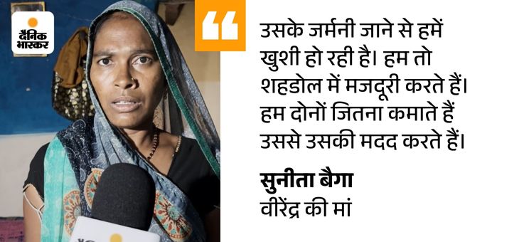 सुनीता से कहा कि उनका बेटा जर्मनी जा रहा है, तो बोलीं- हम शहडोल के आगे नहीं गए। खुश हैं कि बेटा विदेश जाएगा। पिता विजय बैगा ने कहा- बेटा 3-4 बार बाहर खेलने गया है। सब कहते हैं कि वह बहुत अच्छा खेलता है।