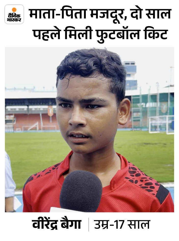 वीरेंद्र बोला- नई तकनीक सीखकर लौटूंगा भास्कर से बातचीत में वीरेंद्र ने कहा- मैं बचपन से ही फुटबॉल खेल रहा हूं। जब 11 साल का था, तब से रेगुलर फुटबॉल खेलना शुरू किया। एक लोकल और एक ओपन नेशनल टूर्नामेंट खेल चुका हूं। मेरे पास पहले जूते नहीं थे, तो बिना जूतों के ही खेलता था। दो साल पहले 2023 में मुझे किट मिली है। अब फुटबॉल शू हैं।