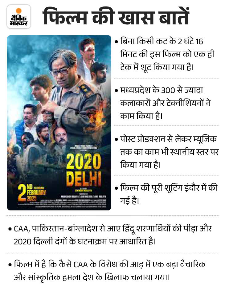 इंदौर में शूट की गई भारत की पहली वन-शॉट हिंदी फीचर फिल्म ‘2020 दिल्ली’ 14 नवंबर 2025 को देशभर के सिनेमाघरों में रिलीज के लिए तैयार है। फिल्म को लेकर कई विवाद और राजनीतिक विरोध भी सामने आए, लेकिन दिल्ली हाईकोर्ट ने इसे रचनात्मक स्वतंत्रता का समर्थन दे