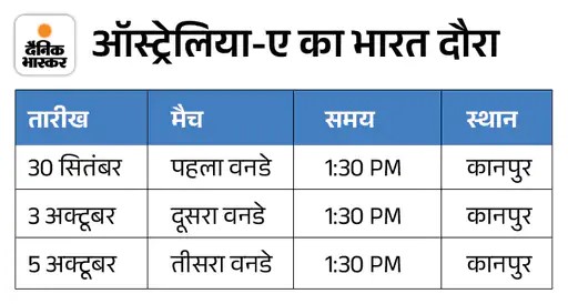 टॉप ऑर्डर बैटर श्रेयस अय्यर ऑस्ट्रेलिया-ए के खिलाफ होने वाली वनडे सीरीज में इंडिया-ए की कप्तानी करेंगे। इंडिया-ए को ऑस्ट्रेलिया-ए के खिलाफ 30 सितंबर से कानपुर में वनडे सीरीज खेलनी है। इसके लिए BCCI ने गुरुवार को टीम का ऐलान किया।