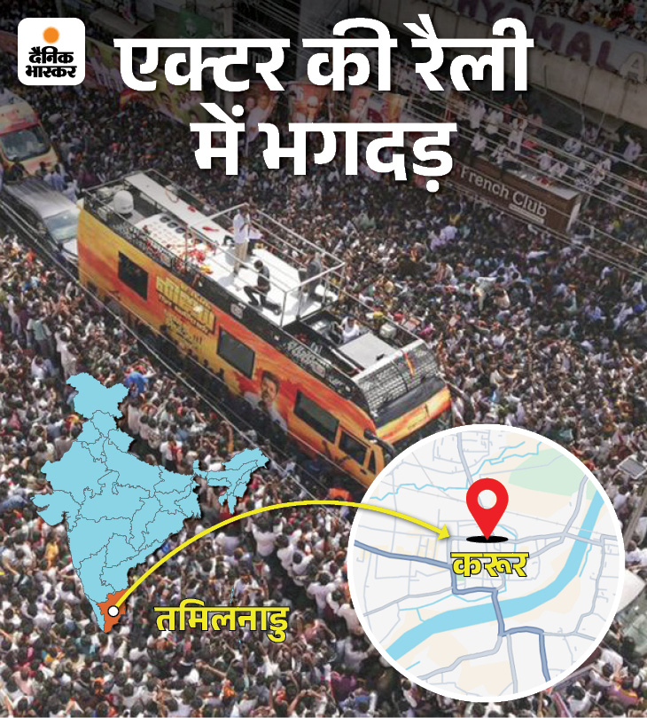 तमिलनाडु- एक्टर विजय की रैली में भगदड़ से 38 मौतें: 58 से ज्यादा घायल; 9 साल की बच्ची के गुमने की खबर से बेकाबू हुई भीड़