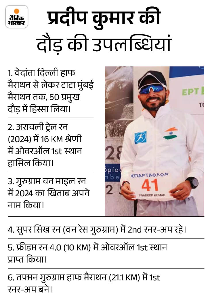 प्रदीप कुमार का मानना है कि निरंतर अभ्यास ही सफलता की कुंजी है। वे हर हफ्ते लगभग 140 किलोमीटर की दौड़ लगाकर खुद को तैयार करते हैं। यही नियमितता उन्हें लंबे रनों में मजबूती और स्टैमिना देती है। पेशे से एडवोकेट प्रदीप ने कई बड़े संस्थानों में मैनेजर के पद पर भी काम किया है। साल 2020 से वे गुरुग्राम रोड रनर्स क्लब के सक्रिय सदस्य हैं और रनिंग कल्चर को बढ़ावा देने में योगदान दे रहे हैं।