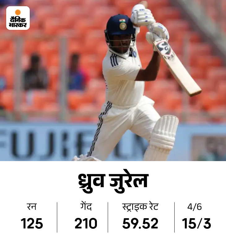 जुरेल का पहला टेस्ट शतक, भारतीय सेना को समर्पित किया विकेटकीपर बल्लेबाज ध्रुव जुरेल ने अपना पहला टेस्ट शतक भारतीय सेना को समर्पित किया। उनके पिता कारगिल युद्ध के पूर्व सैनिक रहे हैं। जुरेल ने बताया कि अर्धशतक के बाद का सैल्यूट उनके पिता के लिए था, लेकिन शतक के बाद का सैल्यूट पूरी भारतीय सेना के लिए था।