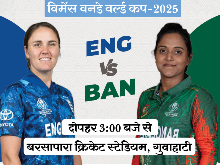 विमेंस वर्ल्ड कप में आज चार बार की चैंपियन इंग्लैंड का सामना लीग स्टेज में बांग्लादेश से होगा। मुकाबला गुवाहाटी के बरसापारा क्रिकेट स्टेडियम में दोपहर 3:00 बजे से खेला जाएगा। टॉस हर मैच की तरह 2:30 बजे होगा। पूरी खबर