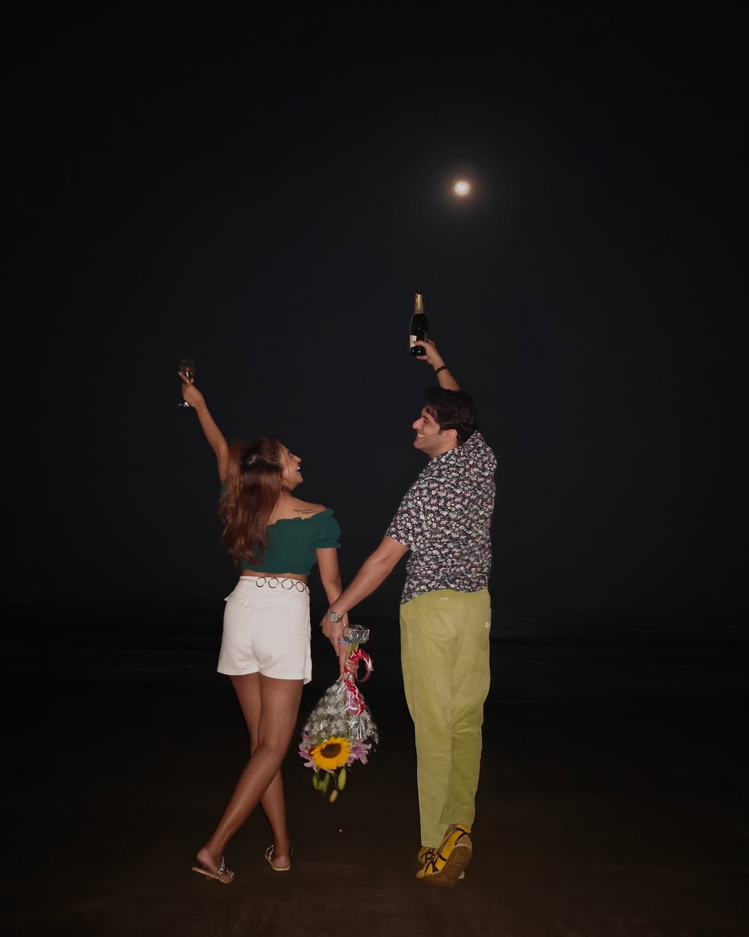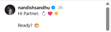 नंदीश सिंह संधू ने इंस्टाग्राम पर अपनी मंगेतर कविता लहंगे के साथ कुल 8 तस्वीरें पोस्ट की हैं, जिनमें दोनों को अलग-अलग अंदाज में पोज देते देखा जा सकता है। इस पोस्ट के कैप्शन में नंदीश ने लिखा, हाय पार्टनर
