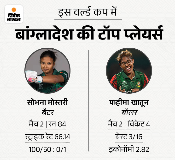 सोभना ने टीम के लिए सबसे ज्यादा रन बनाए बांग्लादेश की सोभना मोस्तरी, राबेया खान तथा फाहीमा खातून ने इस लो स्कोरिंग मुकाबले में काफी अच्छा प्रदर्शन किया है और पिछले मैच में इंग्लैंड को अच्छी टक्कर दी थी। सोभना मोस्तरी टूर्नामेंट में टीम की टॉप स्कोरर हैं।
