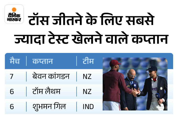 गिल 6 टॉस हारने के बाद जीते भारतीय कप्तान शुभमन गिल को लगातार 6 टेस्ट मैचों में टॉस हारने के बाद आज उन्हें जीत मिली। गिल तीसरे ऐसे कप्तान बने जिन्हें टॉस जीतने के लिए 6 या उससे ज्यादा मैच लगे।