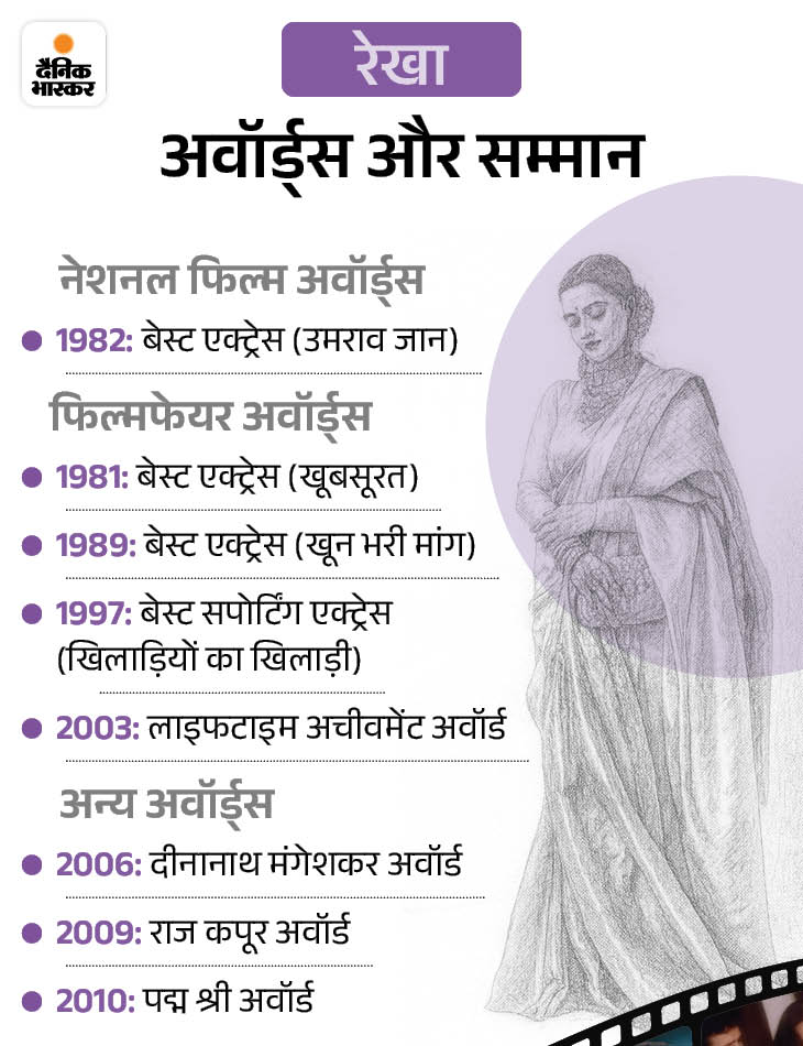 निजी जिंदगी की उथल-पुथल का असर रेखा के करियर पर भी पड़ा। उनकी मेरा पति सिर्फ मेरा है और अमीरी गरीबी जैसी फिल्में फ्लॉप रहीं। हालांकि, साल 1991 में उन्होंने फूल बने अंगारे से दमदार कमबैक किया, जिसके लिए उन्हें फिल्मफेयर नॉमिनेशन भी मिला।