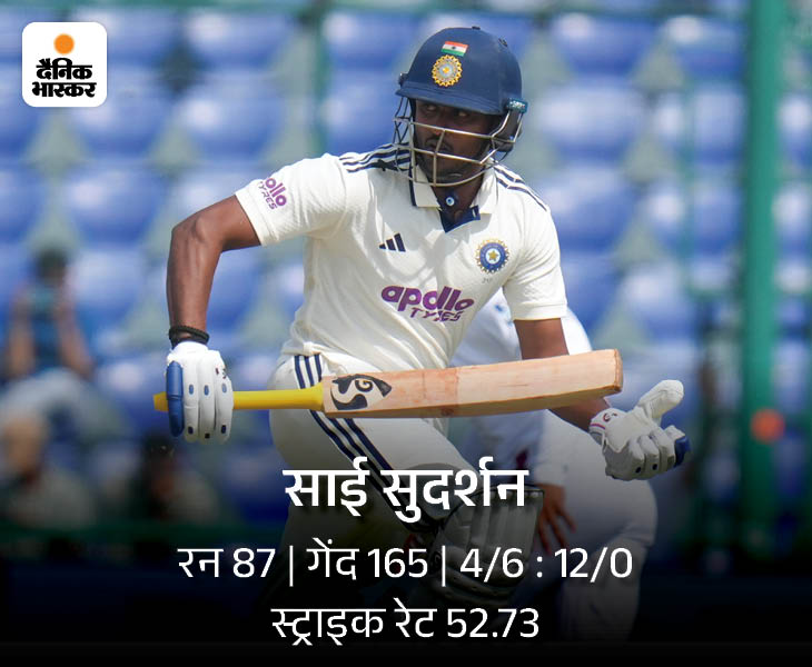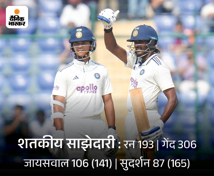 सुदर्शन शतक लगाने से चूके दूसरे सेशन में भारत ने विकेट नहीं गंवाया। यशस्वी ने अपना 7वां टेस्ट शतक लगाया, वहीं सुदर्शन ने दूसरी फिफ्टी लगा दी। तीसरे सेशन में सुदर्शन 87 रन बनाकर आउट हुए, उन्होंने यशस्वी के साथ दूसरे विकेट के लिए 193 रन की पार्टनरशिप की। वेस्टइंडीज से दोनों विकेट लेफ्ट आर्म स्पिनर जोमेल वारिकन ने लिए।