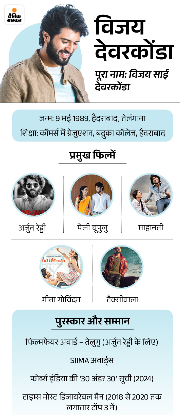 वहीं, विजय देवरकोंडा ने 2011 में रवि बाबू द्वारा निर्देशित रोमांटिक कॉमेडी फिल्म ‘नुव्विला’ से अपने एक्टिंग करियर की शुरुआत की। इसके बाद उन्होंने ‘लाइफ इज ब्यूटीफुल’ (2012) और ‘येवड़े सुब्रमण्यम’ (2015) जैसी फिल्मों में छोटे रोल प्ले किए।
