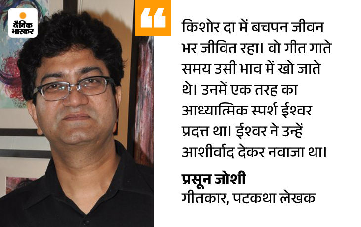 किशोर दा के भीतर बाल सुलभ जीवित रहा- प्रसून जोशी सम्मान और किशोर दा के जीवन पर अपने विचार साझा करते हुए प्रसून जोशी ने कहा किसी भी कलाकार के लिए यह बहुत बड़ा सम्मान है। मुझे इससे जुड़ने का सौभाग्य मिल रहा है। किशोर दा निष्कलंक, सहज और कलकल बहने वाले व्यक्ति थे। वो लोगों को हंसी और दर्द, दोनों दुनिया में ले जाते थे।