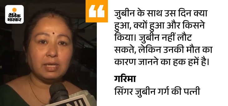 असम के लोकप्रिय गायक जुबीन गर्ग के निधन को एक महीना बीतने को है, लेकिन उनकी पत्नी गरिमा गर्ग अब भी जवाब तलाश रही हैं। दैनिक भास्कर से बातचीत में उन्होंने कहा कि जांच में कई सवालों के जवाब आज भी नहीं मिले हैं।