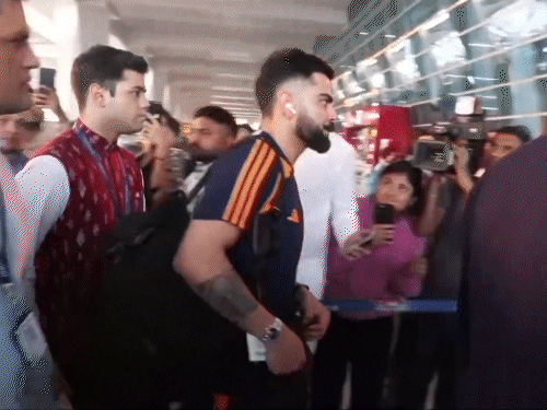 नई दिल्ली के इंदिरा गांधी एयरपोर्ट के अंदर जाते विराट कोहली।