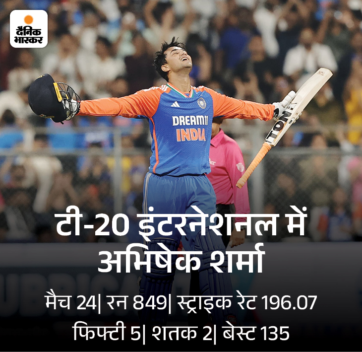 अभिषेक शर्मा ने 2024 में भारत के लिए टी-20 डेब्यू किया था। वे एक ही साल में टी-20 के नंबर-1 बल्लेबाज बन गए।