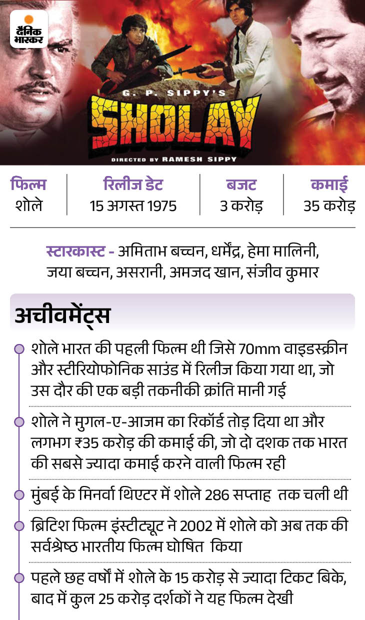 रमेश सिप्पी ने ‘सीता और गीता’ जैसी सफल फिल्म बनाने के बाद एक्शन जॉनर की ओर रुख किया और हॉलीवुड वेस्टर्न फिल्मों जैसा एक्शन पर आधारित फिल्म बनाने की इच्छा जताई। इसी दौरान उन्हें सलीम-जावेद की एक छोटी सी कहानी मिली, जिसमें उन्हें बहुत संभावनाएं नजर आईं। रमेश सिप्पी ने इस कहानी को विकसित कर एक बड़ी फिल्म बनाने का फैसला किया, जो अंततः ‘शोले’ बनी। यह सिर्फ एक फिल्म नहीं,बल्कि भारतीय सिनेमा का वो पर्व है, जिसकी चमक आज भी हर दिल में जलती है।
