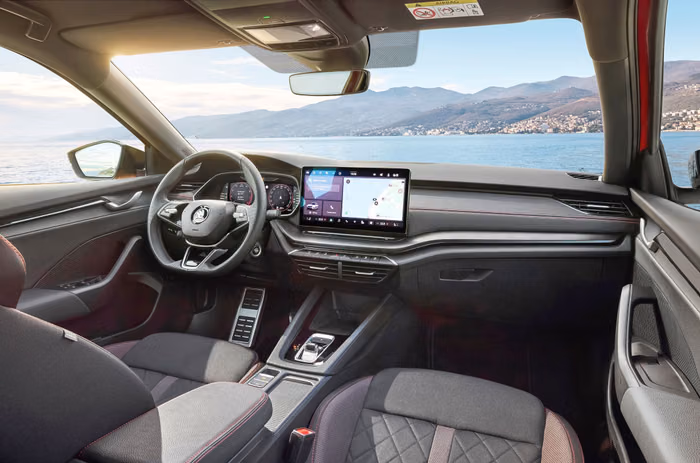 Coming to features, the Octavia RS comes with a 13-inch infotainment touchscreen, a 10.25-inch digital driver’s display, 11-speaker Canton sound system, a 360-degree camera, Matrix LED headlights, wireless Apple CarPlay and Android Auto, heated and powered front seats with massage function, a 3-zone climate control, 10 airbags, adaptive cruise control, and more.