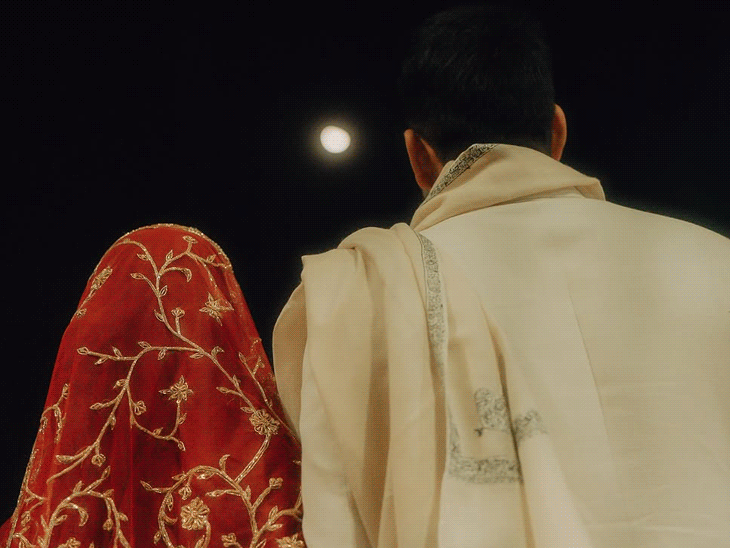 दूसरी तस्वीर में जायरा अपने पति के साथ आसमान की तरफ देखते हुए नजर आ रही हैं। उनके सिर पर गहरे लाल रंग का दुपट्टा है, जिस पर गोल्डन कढ़ाई है। वहीं उनके पति क्रीम कलर की शेरवानी और मैचिंग स्टोल में दिखाई दे रहे हैं। हालांकि अपनी पोस्ट में जायरा ने अपने शौहर न चेहरा दिखाया या न नाम बताया।