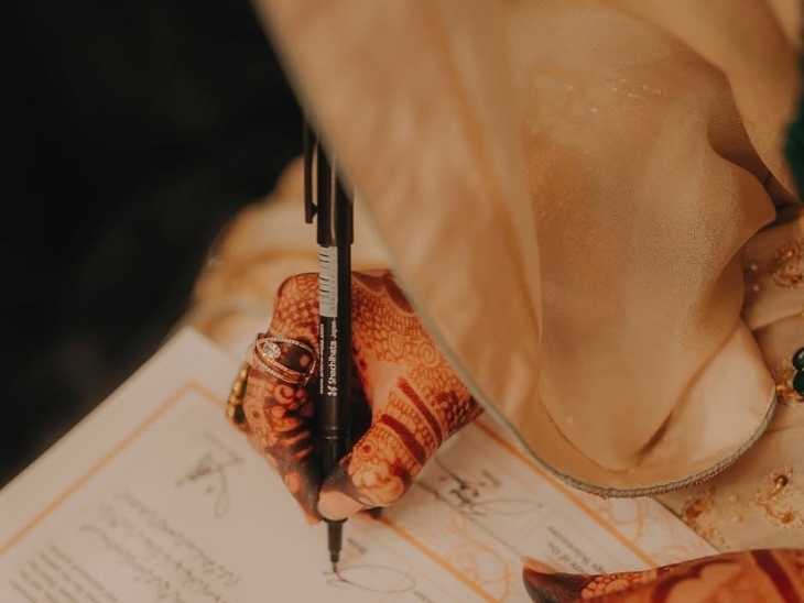 जायरा ने दो फोटो शेयर कीं, जिनमें उनकी शादी के खास पल नजर आ रहे हैं। पहली तस्वीर में वो निकाहनामा साइन करती दिख रही हैं। उनके हाथों में मेहंदी लगी है और उन्होंने हरे रंग की एमरॉल्ड रिंग पहनी हैं। इस फोटो में वो निकाहनामा के कागज पर साइन कर रही हैं।
