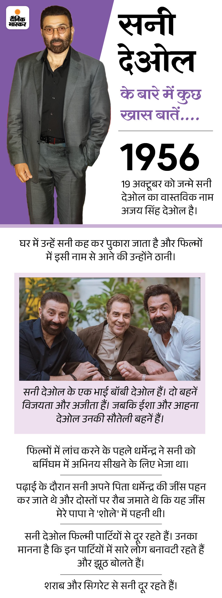 आज सनी देओल के 68वें जन्मदिन पर जानते हैं उनकी जिंदगी से जुड़े कुछ बड़े फैसलों के बारे में…