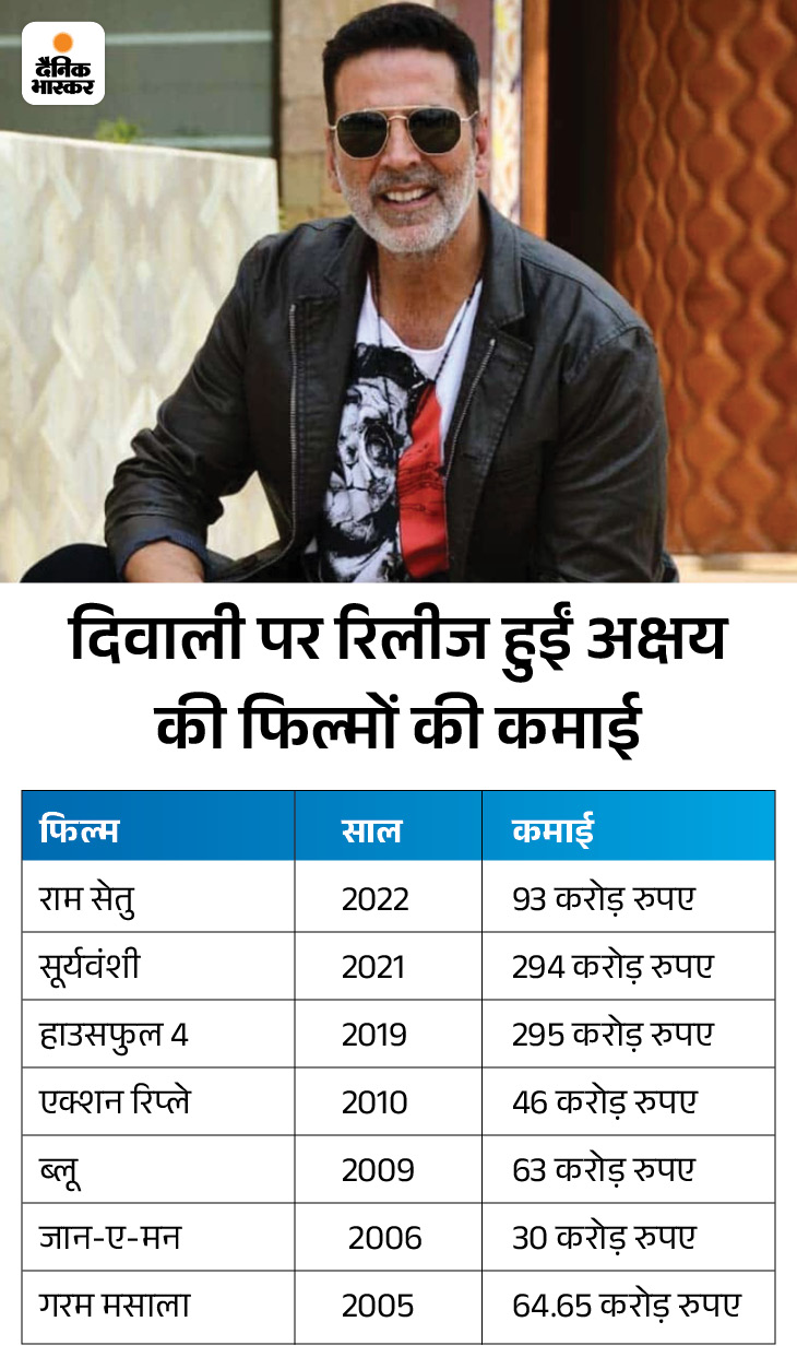 ‘राम सेतु’ और ‘थैंक गॉड’ 25 अक्टूबर 2022 को रिलीज हुईं। अक्षय कुमार की फिल्म ने लगभग 93 करोड़ रुपए कमाए, जबकि अजय देवगन की फिल्म ने करीब 50 करोड़ रुपए का बिजनेस किया।