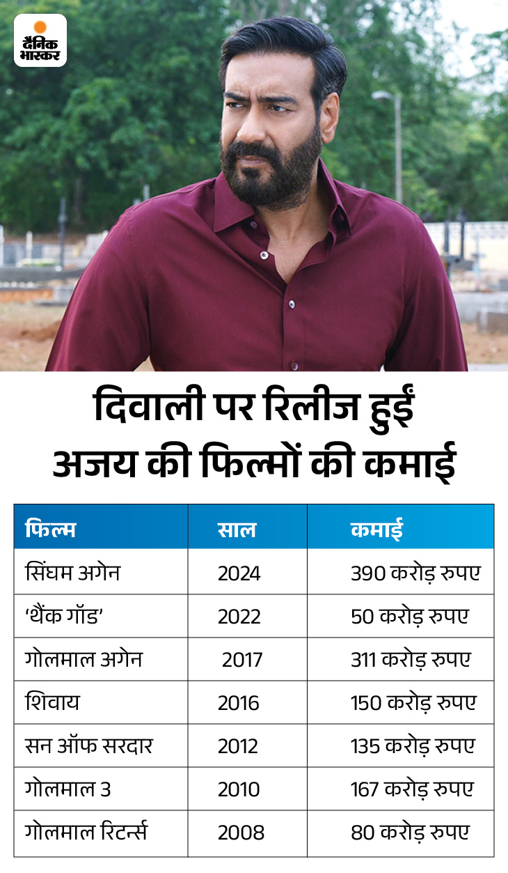 पिछले साल दिवाली के समय 1 नवंबर को ‘सिंघम अगेन’ और ‘भूल भुलैया 3’ एक साथ रिलीज हुई थीं। दोनों को दर्शकों ने पसंद किया। ‘सिंघम अगेन’ ने वर्ल्डवाइड लगभग 390 करोड़ रुपए और ‘भूल भुलैया 3’ ने लगभग 420 करोड़ रुपए की कमाई की थी।