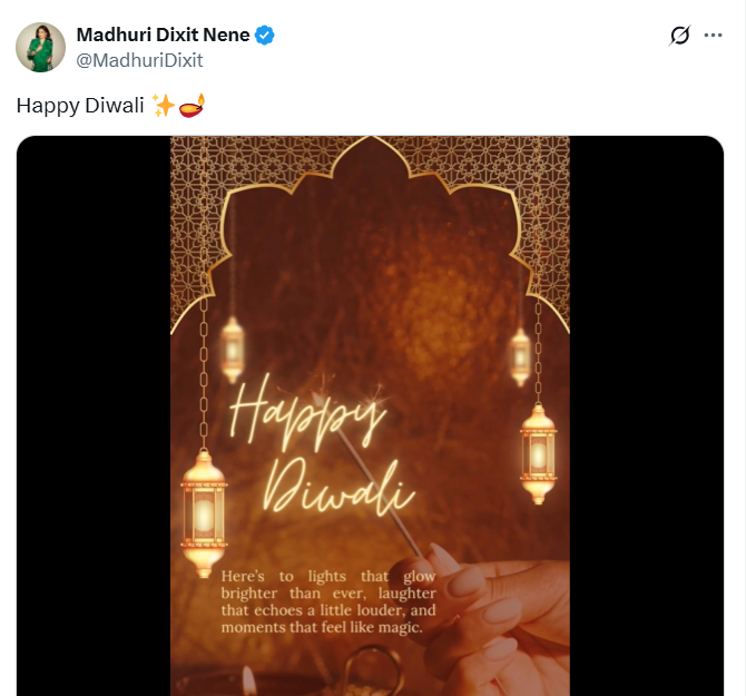 माधुरी दीक्षित ने भी एक खूबसूरत मोशन पोस्टर के साथ अपने फैंस और करीबियों को दिवाली की शुभकामना दी है।