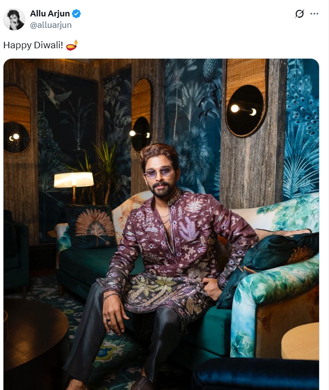 पुष्पा स्टार अल्लू अर्जुन ने अपनी एक खूबसूरत तस्वीर शेयर करते हुए फैंस को दिवाली की बधाइयां दीं।