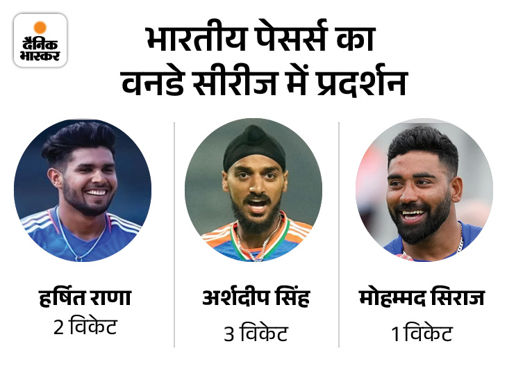 भारत के फास्ट बॉलर्स मददगार कंडीशन में भी अच्छा प्रदर्शन नहीं कर पाए। अर्शदीप सिंह और हर्षित राणा मिलकर 2 मैचों में 5 ही विकेट ले सके। मोहम्मद सिराज को 2 मैचों में एक भी विकेट नहीं मिला। दूसरी ओर ऑस्ट्रेलिया के लिए फास्ट बॉलर्स ने 11 विकेट निकाले।