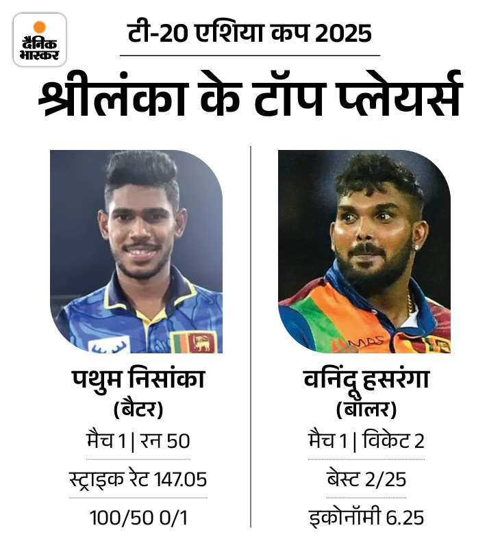 निसांका ने पहले मैच में फिफ्टी लगाई बांग्लादेश के खिलाफ श्रीलंका के गेंदबाजों और बल्लेबाजों ने कमाल का प्रदर्शन किया था, ऐसे में वह अपनी प्लेइंग इलेवन में ज्यादा बदलाव नहीं करना चाहेंगे। कुसल मेंडिस का बल्ला पहले मुकाबले में नहीं चल पाया था। ऐसे में उनसे एक बड़ी पारी की उम्मीद होगी। बांग्लादेश के खिलाफ ओपनर पथुम निसांका ने शानदार बैटिंग करते हुए अर्धशतक लगाया था। उनके अलावा कमिल मिशारा ने भी 46 रन बनाए थे। बॉलिंग डिपार्टमेंट में स्पिनर वनिंदू हसरंगा ने 2 विकेट लिए थे।