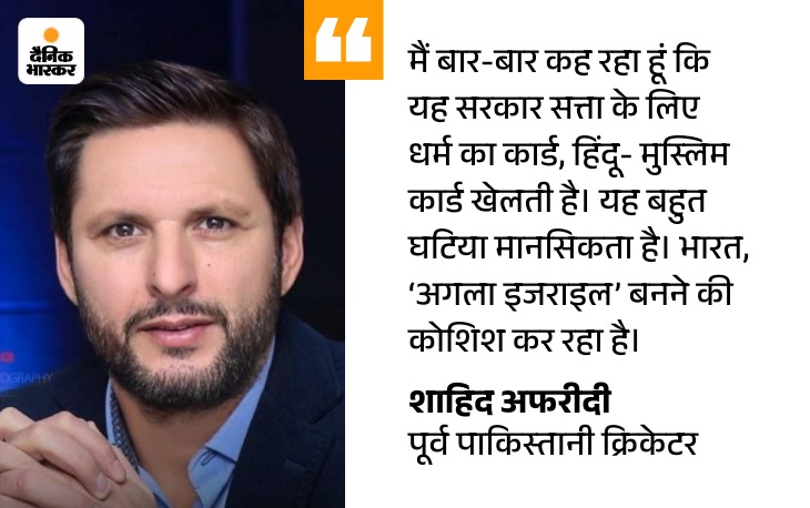पाकिस्तान के पूर्व क्रिकेटर शाहिद अफरीदी ने कहा कि भारत, अगला ‘इजराइल’ बनने की कोशिश कर रहा है। उन्होंने मोदी सरकार पर ‘हिंदू-मुस्लिम कार्ड खेलने’ का आरोप लगाया।