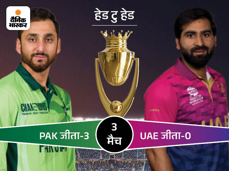 टी-20 इंटरनेशनल में इन दोनों ही टीमों की आखिरी भिड़ंत हाल ही में टी-20 ट्राई सीरीज के दौरान हुई थी, जहां पाकिस्तान ने 171 रनों का स्कोर डिफेंड करते हुए यूएई को 31 रनों से हराया था। दोनों के बीच अब तक कुल 3 टी-20 मुकाबले खेले गए हैं। इसमें तीनों बार पाकिस्तान को जीत मिली है।