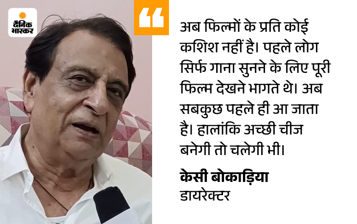 बोकाड़िया: कोरोना काल आ गया और सिनेमा हॉल की टिकटें इतनी महंगी हैं कि लोग सोचते हैं छोड़ो जाने दो। कुछ दिन में तो टीवी और मोबाइल पर ये फिल्म आ ही जाएगी। अब फिल्मों के प्रति कोई कशिश नहीं है। पहले लोग सिर्फ गाना सुनने के लिए पूरी फिल्म देखने भागते थे। लोग एक गाने को 4-4 बार देखते थे। अब सबकुछ पहले ही आ जाता है, एक्सपोजर के साधन बदल गए हैं। अच्छी चीज बनेगी तो चलेगी भी।