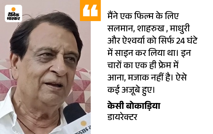 बोकाड़िया: सच्चाई तो ये है कि मैंने उस फिल्म के लिए सलमान खान, शाहरुख खान, माधुरी दीक्षित और ऐश्वर्या राय को सिर्फ 24 घंटे में साइन कर लिया था। पहले इस फिल्म के लिए काजोल को लेने का सोचा था, लेकिन उनसे बात नहीं बनी। उस समय माधुरी का असिस्टेंट जानकार था, माधुरी के लिए रोल ले लिया। इन चारों का एक ही फ्रेम में आना, मजाक नहीं है। ऐसे कई अजूबे हुए। आज का अर्जुन के लिए अमिताभ बच्चन के पास गया तो उन्होंने अपनी फीस 70 लाख की बजाय 80 लाख रुपए बताई। मैंने कहा हीरो कोई लाख में नहीं होता, 1 करोड़ रुपए लीजिए। इस तरह पहली बार किसी हीरो को एक फिल्म के लिए करोड़ रूपए फीस मिली।