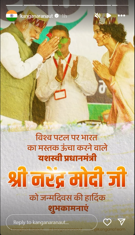 एक्ट्रेस और बीजेपी सांसद कंगना कंगना रनोट ने पीएम मोदी के साथ अपनी एक तस्वीर शेयर कर बधाई दी।