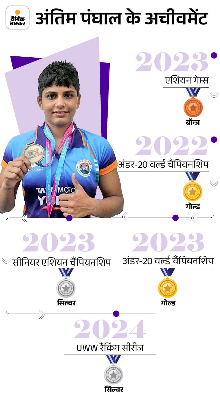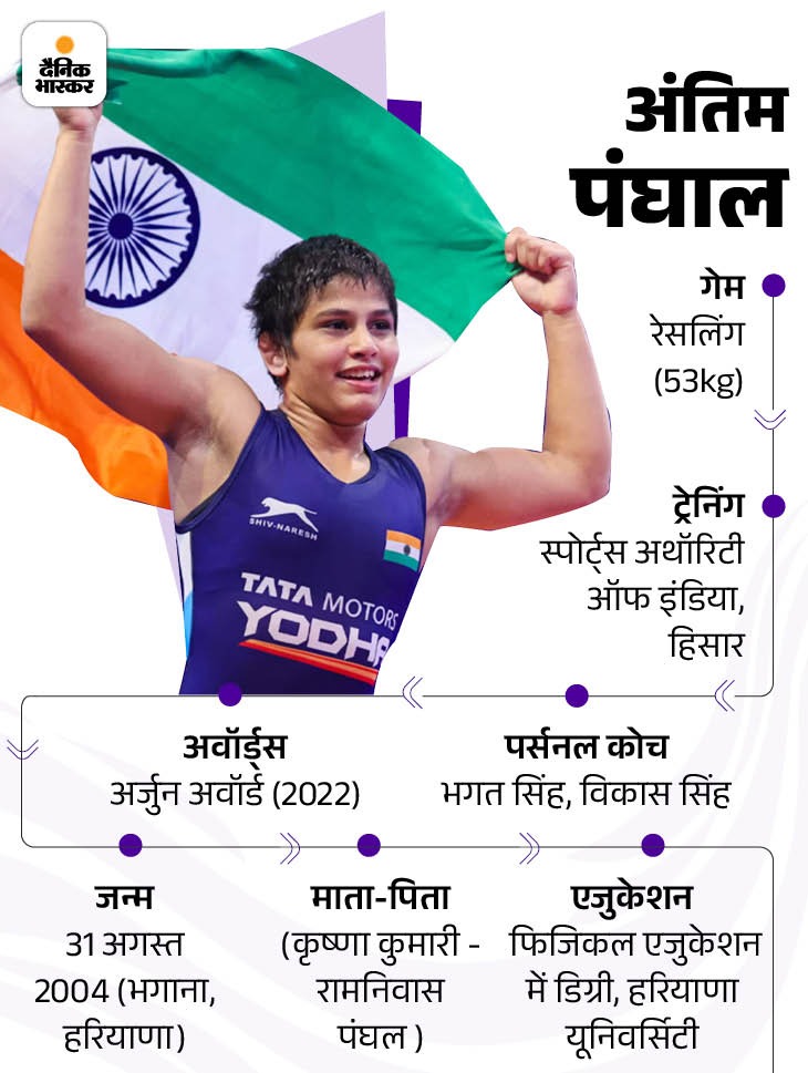 अंतिम 4 सेकेंड में जीती : अंतिम एक प्वाइंट से पिछड़ गई। इसके बाद मैच खत्म होने में 4 सेकेंड ही बचे थे कि अंतिम पंघाल ने टेक-डाउन करके मैच जीत लिया और सेमीफाइनल में पहुंच गई। अंतिम का मुकाबला अब सेमीफाइनल में होगा।